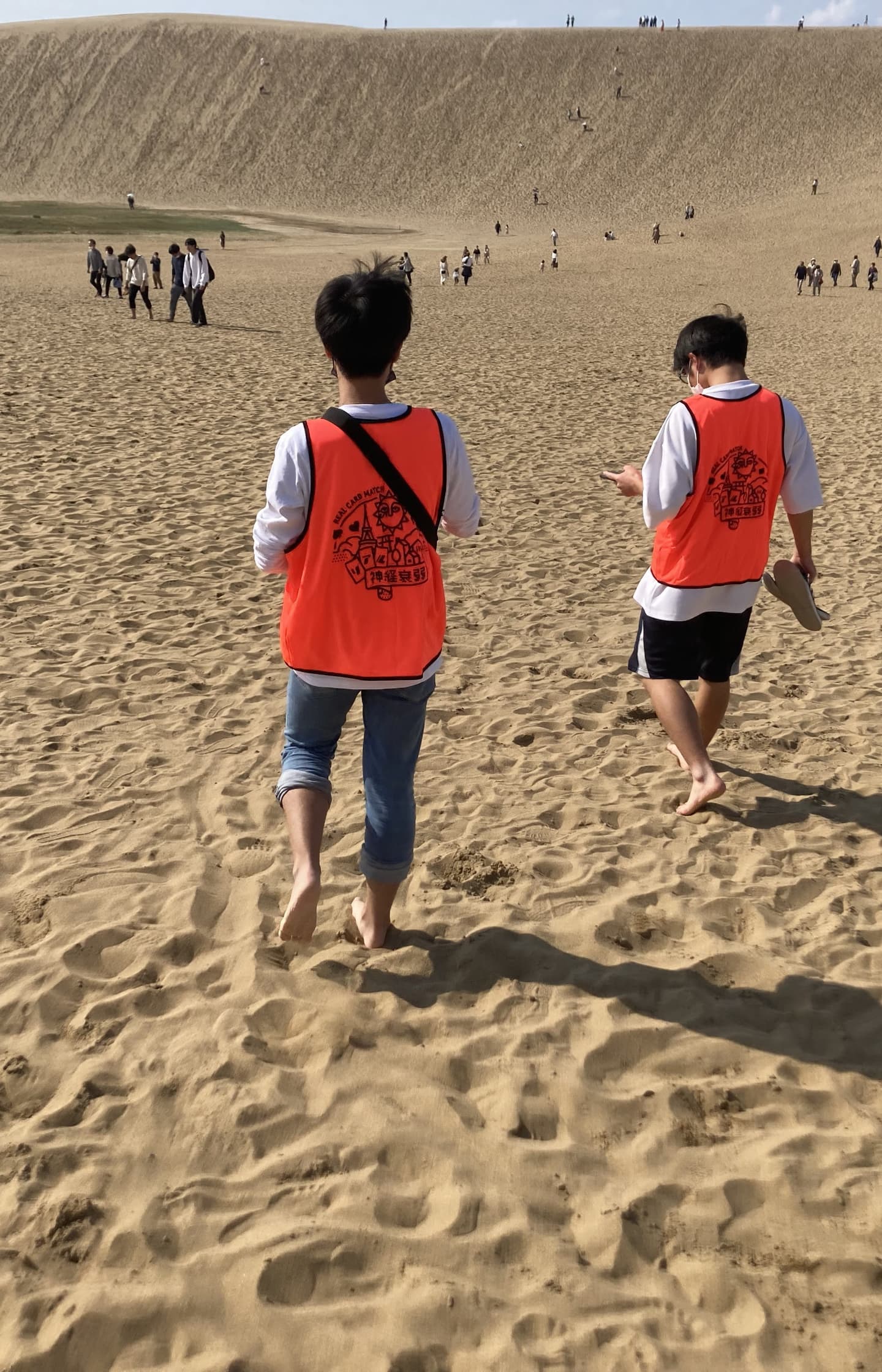 鳥取砂丘内で、スマートフォンとクイズマップを持って、砂丘内の位置を獲得していきます。